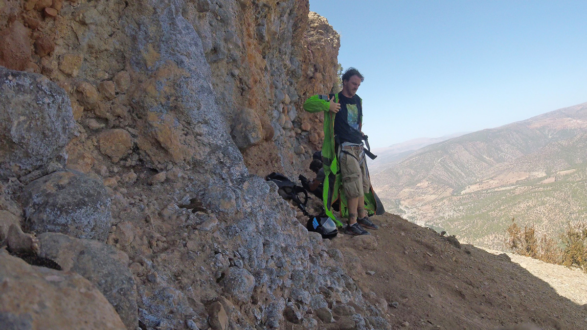 Pour la première année Rock Drop à organisé un voyage au Maroc dans le Haut Atlas pour sauter la Cathédrale. Roch et trois anciens élèves, Steph, JP et Sylvain ont participé à cette aventure et profité de l’organisation pour progresser en dérive. Arrivés à Marrakech pour prendre la température sur la place Jemaa El Fna bondée de monde, nous enchaînons avec un trajet de sept heures en voiture sur les routes marocaines. C’est à Azaouit Ahensal, au pied de la falaise, que nous posons les bagages.